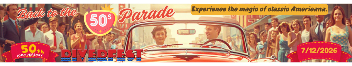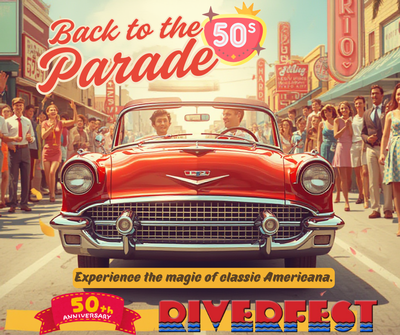 Step back in time and help us celebrate 50 years of Riverfest with a parade full of classic cars, sock hops, poodle skirts, greasers, and good old-fashioned community fun! We invite businesses, organizations, families, and clubs to get creative and embrace the spirit of the fabulous 1950s.