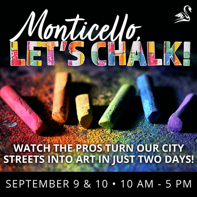 Featuring street art by professionals, local amateurs, and art enthusiasts from all over the world. The artists will be creating their masterpieces Saturday and Sunday (September 9-10) at the Monticello Community Center in Downtown Monticello! Join us from 10 a.m. to 5 p.m. each day as we watch professionals turn our roadways into works of art!