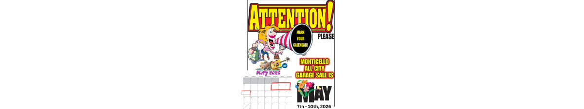 Monticello All City Garage Sale Date and Time Thursday May 7, 2026 Sunday May 10, 2026 Location Monticello area Website https://www.hometownsource.com/monticello_times/ Set a Reminder Enter your email address below to receive a reminder message. Email address Select the amount of Days before the event -- Select Days Before Event -- 1 Day 2 Days 3 Days 1 Week Captcha Validation Please complete the Captcha Submit Description City Wide Garage Sale Set a Reminder Enter your email address below to receive a reminder message. Email address Select the amount of Days before the event -- Select Days Before Event -- 1 Day 2 Days 3 Days 1 Week Captcha Validation Please complete the Captcha Submit Share × Print Email Add to Calendar Facebook Twitter LinkedIn Tell a Friend × Select Calendar Type × Google Yahoo iCal (Outlook, Apple, or other)