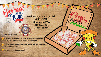 Get ready for an unforgettable evening of laughter, networking, and friendly competition! Gather your team, enjoy delicious pizza (gluten-free options available), sip on your favorite beverage, and dive into the excitement of our Team Puzzle Challenge.